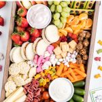 Be sure to store in leftovers in an airtight container. The meat, cheese, fruit, veggies, and dip need to be stored in the refrigerator.